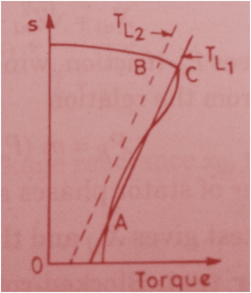 Para obtener un punto de funcionamiento para un par de carga determinado, el punto de intersección de las características de par de carga y las características de par de velocidad del motor determina el punto de funcionamiento estable del motor. Pero esto no garantiza que el punto de intersección sea estable.
