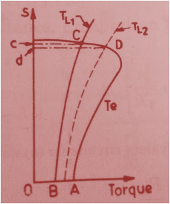 Supongamos que las características del motor son tales que a medida que aumenta el par de carga aumenta la velocidad del motor, entonces obviamente esta combinación de motor y carga no resultará en una operación estable.