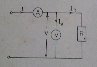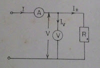 Es obvio a partir de la figura que el amperÃmetro leerá la corriente que fluye a través del voltÃmetro y la resistencia R. Por lo tanto, la corriente medida por el amperÃmetro Ia = Iv+Ir